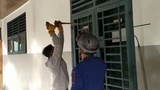 "Kami dapat laporan dari kepala sekolah ada ular di pintu besi ruangan. Jadi tim rescue animal Damkar turun membantu evakuasi ular tersebut yang berukuran sekitar 60 centimeter," kata Kepala tim rescue animal Damkar Tanjungbalai, Adi Harahap.