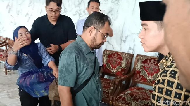 Ia tampak berlari dari mobilnya dengan menggunakan payung karena situasi sekitar dalam kondisi hujan deras. Gibran pun langsung menyalami beberapa ulama yang ada di lokasi.