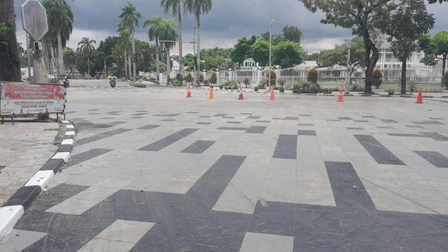 Viral Jalan Sudirman Medan depan rumah dinas Gubernur Sumut yang dikeluhkan warga karena licin dan bikin pengendara tergelincir. Warga menyebut jalan tersebut dengan jalan keramik karena sekilas mirip pola keramik.