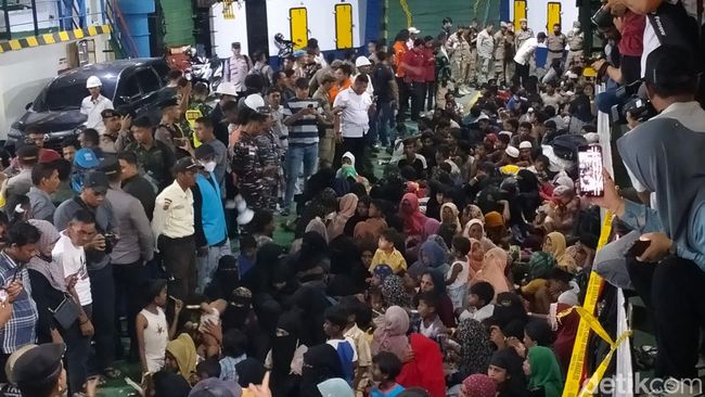 Pantauan detikSumut, para imigran tersebut dibawa ke Banda Aceh dengan menggunakan kapal KMP BRR yang tiba di Pelabuhan Ulee Lheue sekitar pukul 18.45 WIB, Rabu (22/11/2023). Mereka duduk di tempat taruh kendaraan dalam kapal dan dipasang garis polisi.