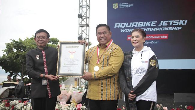 Penyerahan ini diberikan langsung oleh Direktur Operasional Muri, Yusuf Ngadri dalam rangkaian Aquabike Jetski World Championship Lake Toba 2023 di Kecamatan Silahisabungan, Kamis (23/11).