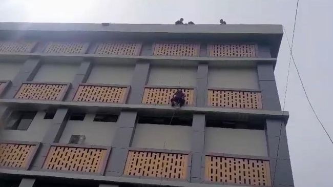 Menurut Sutan, ada delapan petugas yang dikerahkan ke lokasi untuk membantu evakuasi. Proses evakuasi berlangsung dramatis, karena petugas harus menggunakan tali dari puncak gedung.