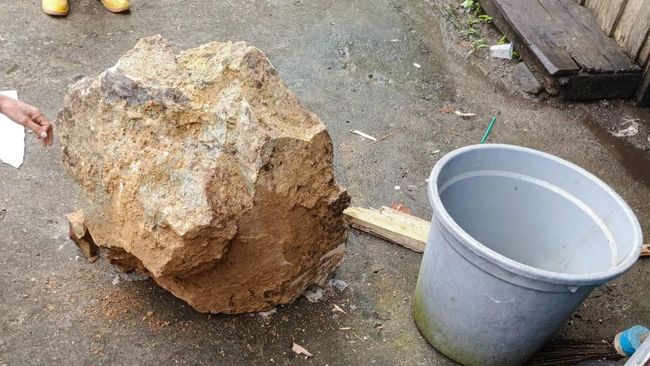 "Akibat batu itu jatuh, warung korban juga rusak berat. Kerugian diperkirakan berkisaran Rp 5 juta rupiah,"sambungnya.