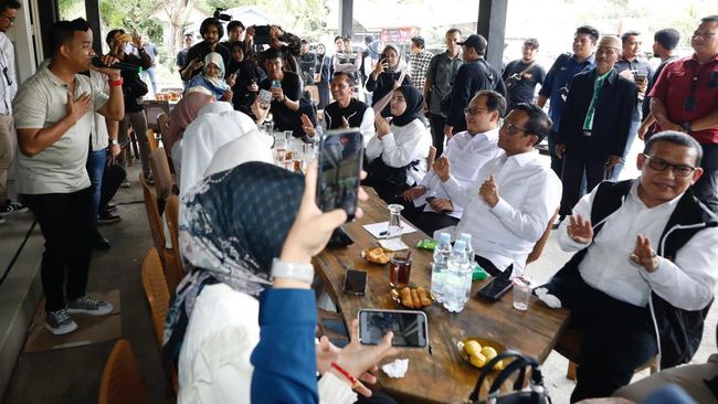 Calon wakil presiden (cawapres) Mahfud MD menyambangi para milenial dan generasi Z di Warung Kopi MD, Kecamatan Sukajaya, Kota Sabang, Aceh, Selasa (28/11/23). Adapun kunjungan ini merupakan salah satu rangkaian kegiatan dalam kampanye perdana.