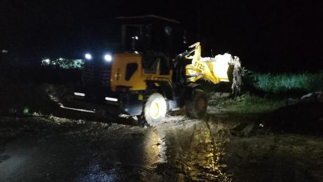 Akibat banyaknya titik longsor, petugas pun mulai mencari bantuan alat berat untuk membersihkan material longsor. Pada akhirnya, bantuan alat berat itu pun didapatkan dari seorang warga yang kebetulan memiliki alat berat.