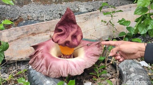 Jakarta - Bunga bangkai ditemukan tumbuh di belakang rumah warga di Desa Buko, Kecamatan Wedung, Demak. Bunga disebut mengeluarkan bau tak sedap pada malam hari.
