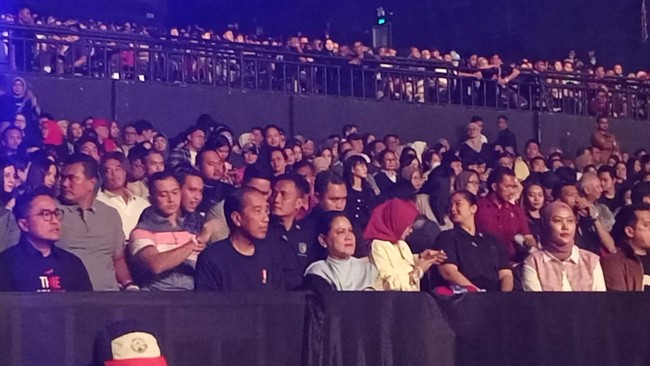 Presiden Jokowi menonton langsung Konser bertajuk The Great Journey of NOAH tersebut bareng istri Iriana Joko Widodo.