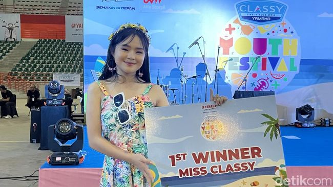 SMA Global Prima Medan berhasil menyabet gelar Miss Classy dalam ajang Classy Yamaha Youth Festival Medan. Charisma Aura Kasih tampil pede saat catwalk di GOR Pemprovsu, Minggu (3/12/2023).