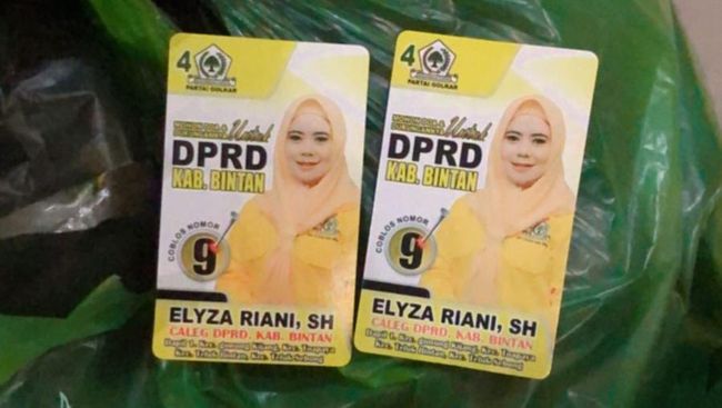 Dari beberapa terlihat beberapa paket sembako itu diketahui berisi kartu nama caleg DPRD Bintan. Kartu nama itu milik caleg dapil Bintan I dari partai Golkar nomor urut 9 atas nama Elyza Riani.