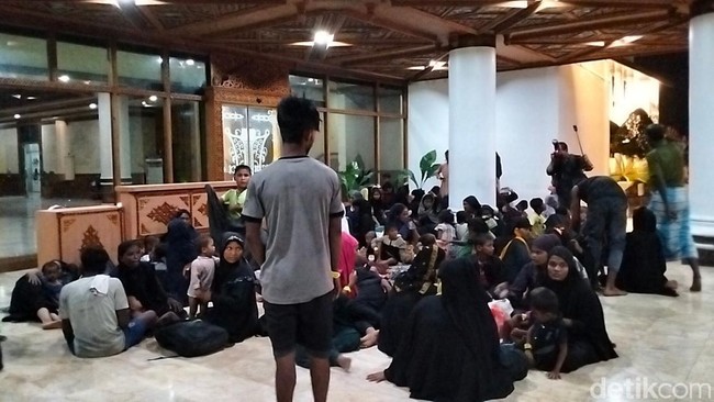 Pantauan detikSumut, warga membawa pengungsi ke Kantor Gubernur Aceh setelah tidak ada titik temu di Kantor Imigrasi Banda Aceh. Tiga kendaraan yang membawa pengungsi kemudian meninggalkan jalan Daud Beureueh sekitar pukul 20.20 WIB, Minggu (10/12/2023).