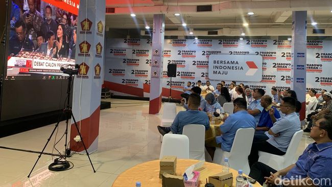 TKD Prabowo-Gibran menggelar nonton bareng (nobar) debat perdana Capres-Cawapres 2024 di rumah Pemenangan Prabowo-Gibran Sumut di Medan. Usai nobar, TKD optimis elektabilitas pasangan tersebut naik terus.