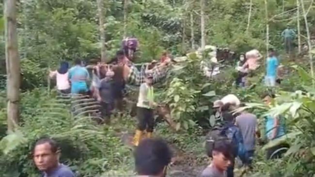 Dalam video yang dilihat detikSumut, Rabu (27/12/2023), tampak wanita itu ditandu sejumlah laki-laki. Mereka tampak melewati kawasan hutan. Ada juga sejumlah warga lainnya yang lalu-lalang melintasi hutan tersebut.