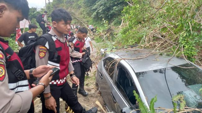 "Dalam peristiwa itu tidak ada korban jiwa, tapi satu unit mobil Honda Brio tertimpa tanah, arus lalu lintas juga putus total," kata Baren, Rabu (27/12/2023).