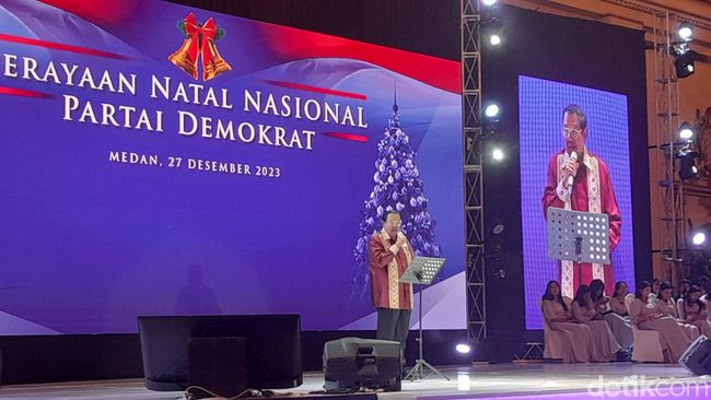 "Saya ingin menjadi bagian dari keindahan dan kebahagiaan merayakan Natal nasional Partai Demokrat tahun 2023, tentu saya tidak akan menyampaikan pidato ataupun orasi saya hanya ingin menyampaikan pandangan pribadi saya tentang sesuatu yang sangat penting tentang negeri ini," kata SBY di Medan, Rabu (27/12/2023).