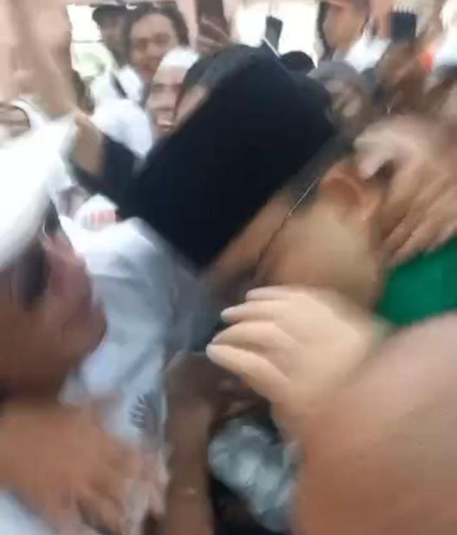 Video menunjukkan capres nomor urut 1 Anies Baswedan dipeluk hingga dicium paksa simpatisannya viral. Aksi ini membuat Anies sampai tertunduk hingga kacamata dan peci yang digunakannya jatuh.