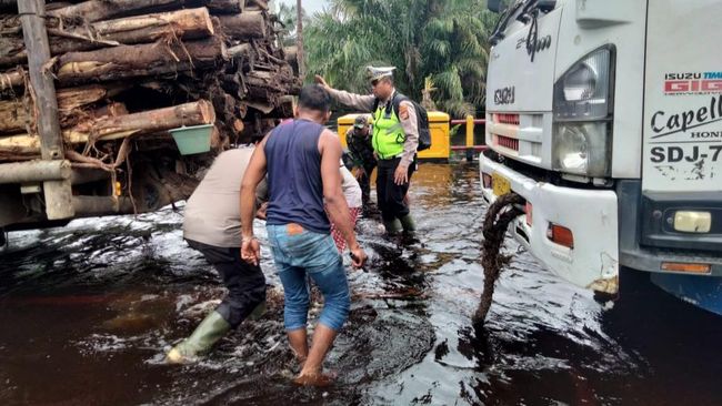 "Mulai pagi tadi personel patroli dengan perahu karet Satpolairud. Kalau dengan perahu personel lebih cepat untuk minta bantuan evakuasi. Memang ada beberapa truk terguling dan terjebak di lokasi," kata Akira.