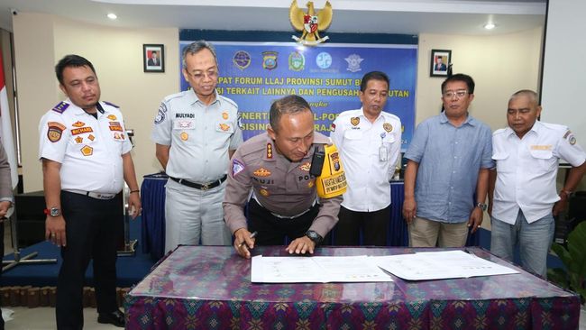 "Jika ada yang melanggar dan tidak mematuhi kesepakatan ini, akan dilakukan penindakan berupa tilang oleh kepolisian dan peringatan serta pencabutan izin trayek oleh BPTD Kelas II Sumut juga Dinas Perhubungan Sumut," ujarnya.