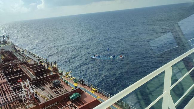 Dalam video diperoleh detikSumut, Kamis (11/1/2024), nelayan tampak berenang menuju tali untuk naik ke kapal tanker SC Gold Ocean. Ketiga nelayan tersebut kemudian diberikan handuk dan selimut.