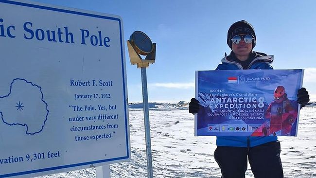 Jakarta - Putri Handayani, pendaki gunung perempuan asal Serdang Bedagai (Sergai), Sumatera Utara (Sumut) berhasil mencapai titik paling selatan bumi di 90°S pada Kamis, 28 Desember 2023. Putri berhasil mencapai kutub selatan setelah 8 hari berjalan sambil menarik kereta luncur seberat 30 kg.