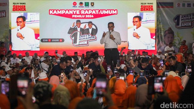 Jakarta - Capres nomor urut 1 Anies Baswedan membacakan pantun 'Asam Sulfat' saat berkampanye di Parung, Bogor. Saat Anies membacakan itu, dia pun disambut tawa para pendukungnya.