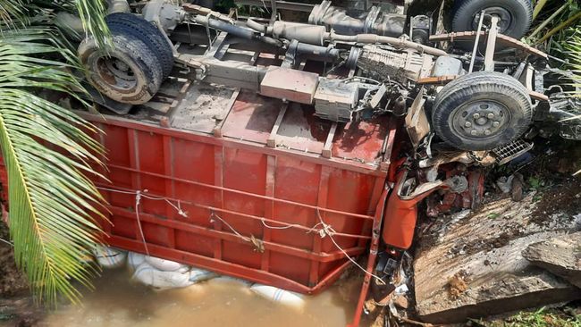 Truk yang membawa muatan padi masuk ke jurang di Aceh Selatan, Aceh. Kecelakaan itu menyebabkan dua orang mengalami luka berat.