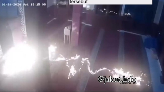 Jakarta Utara - Aksi seorang pria sengaja menyiram cairan diduga benzin dan membakar sajadah masjid di Sunter, Jakarta Utara terekam CCTV. Pelaku ditangkap polisi.