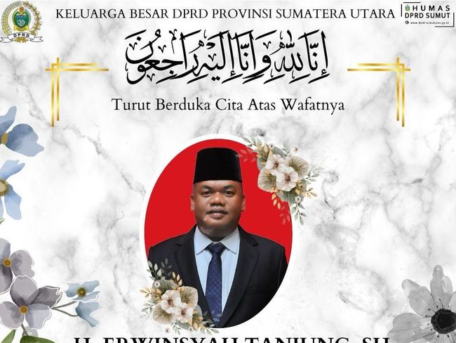 Anggota DPRD Sumut dari Fraksi NasDem (F-NasDem) Erwinsyah Tanjung meninggal dunia. Erwinsyah diketahui memiliki riwayat penyakit jantung.
