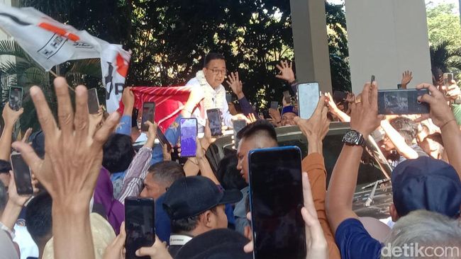 Pantauan di lokasi, Kamis (1/2/2024), Anies mulai keluar dari pintu kedatangan bandara pukul 15.20 WIB. Begitu keluar, Anies langsung disambut ratusan massa yang sudah berada di dalam lokasi bandara.
