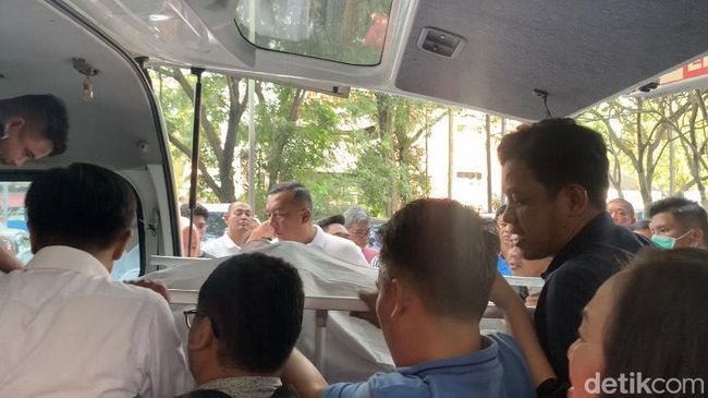 Suara tangisan keluarga pecah begitu jenazah Ketua DPRD Sumut Baskami Ginting dibawa keluar dari rumah sakit untuk dibawa ambulans ke rumah duka. Jenazah dibawa ke rumah duka sekitar pukul 17.00 WIB dari RS Siloam.