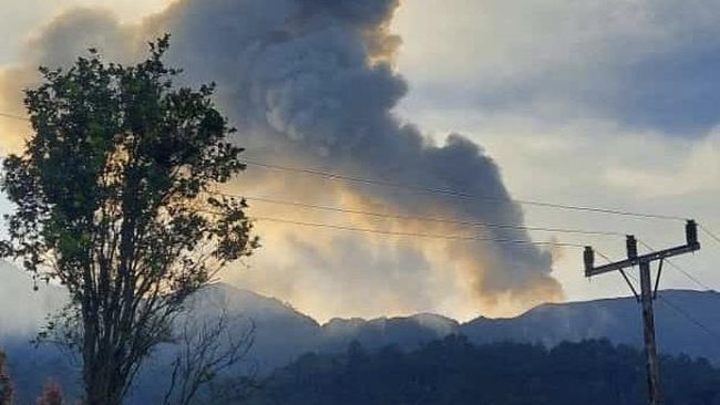 "Erupsi kedua, tinggi kolom abu teramati lebih kurang 700 meter di atas puncak. Kolom abu teramati berwarna putih hingga kelabu dengan intensitas tebal condong ke arah timur laut," terangnya.