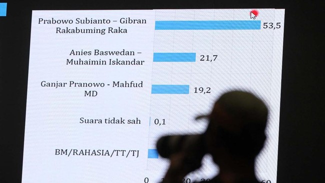 Jakarta - Lingkaran Survei Indonesia (LSI) Denny JA merilis hasil terbaru survei elektabilitas para peserta Pilpres 2024. Dari hasil survei itu, LSI menyebut Prabowo-Gibran diprediksi bisa menang satu putaran.