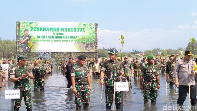 Kepala Staf Angkatan Darat (KSAD) Jenderal Maruli Simanjuntak memimpin penanaman 64.500 batang mangrove di lahan seluas 102,5 hektare di seluruh Aceh. TNI disebut menargetkan dapat menanam jutaan batang bakau di seluruh Indonesia.