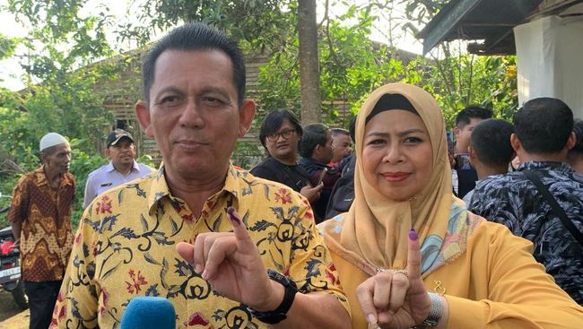 Gubernur Kepri, Ansar Ahmad dan anaknya Bupati Bintan, Robby Kurniawan menggunakan hak pilihnya di TPS 02, Jalan Panjaitan, Kelurahan Melayu Kota Piring, Kecamatan Tanjungpinang Timur, Tanjungpinang, Kepulauan Riau (Kepri). Gubernur Ansar dan Bupati Bintan Robby datang ke TPS bersama keluarga masing-masing.