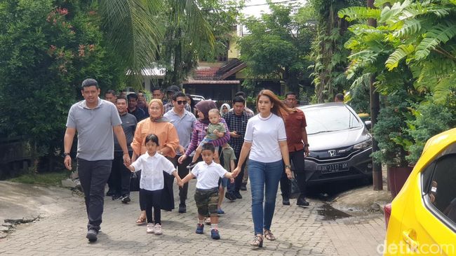 Bobby tampak mengenakan kaus abu-abu dan bercela hitam. Sedangkan Kahiyang mengenakan kaus putih dan celana jeans biru. Sedangkan kedua anaknya berbaju putih.