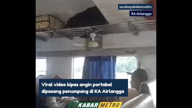"Salah satu penumpang menggunakan kipas angin portabel yang ditempelkan pada rak bagasi. Kipas angin ini mendapatkan listrik dari stop kontak yang ada di kereta api," imbuh akun itu.