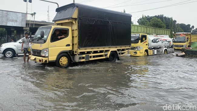 Saat disusuri, ternyata sumber kemacetan berada di sekitaran Tol Bandar Selamat yang terendam banjir dengan ketinggian kurang lebih 30-40 cm.