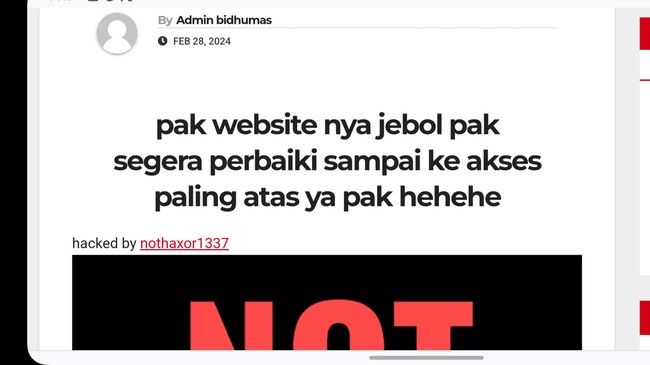 Postingan-postingan pada halaman itu terlihat diunggah pada tanggal 28 Februari 2024. Dalam postingan halaman itu juga peretas menyebut bahwa website tersebut dijebol hingga akses paling atas.