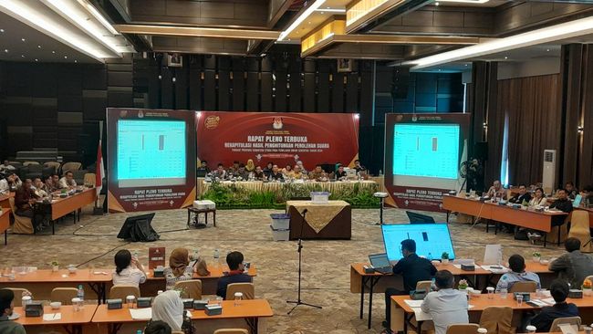Keterangan foto: Proses rekapitulasi penghitungan suara di tingkat Provinsi Sumatera Utara (Nizar Aldi/detikSumut)
