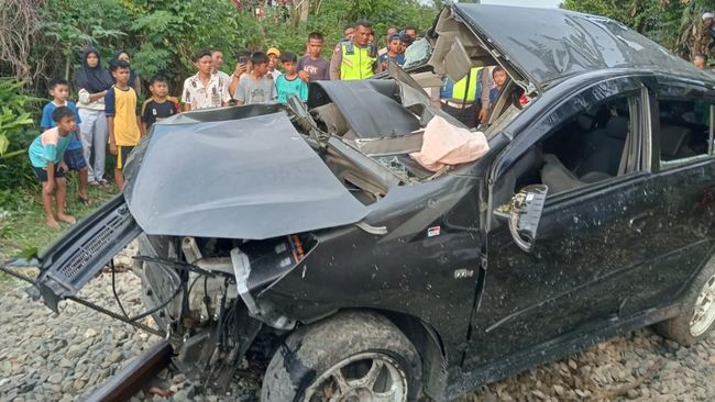 Satu unit mobil Toyota Agya tertabrak kereta api dan terseret sejauh 600 meter di Kota Tebing Tinggi, Sumatera Utara (Sumut). Akibatnya, dua korban yang berada di dalam mobil mengalami luka berat.