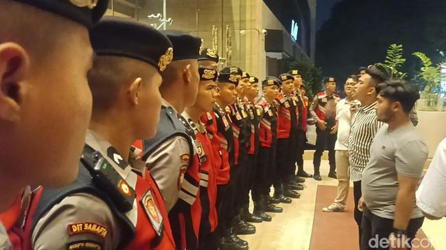 Dilihat detikSumut, Minggu (10/3/2024) pukul 22.12 WIB, sejumlah massa protes di depan pintu masuk Hotel Le Polonia. Mereka berteriak hendak masuk ke dalam hotel.