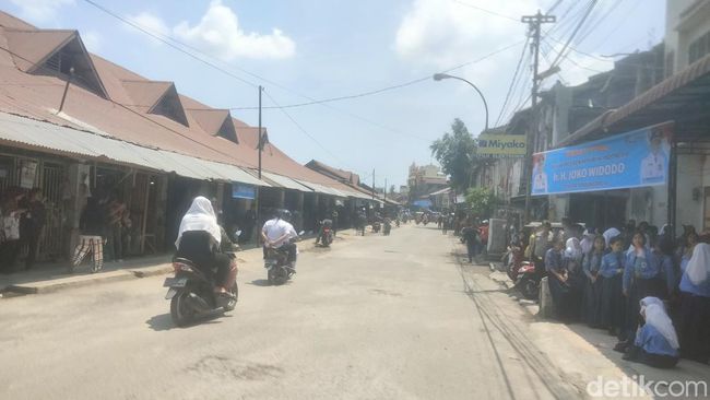 Pantauan detikSumut di lokasi pasar yang akan dikunjungi oleh Jokowi telah ramai warga yang antusias menunggu kedatangan RI 1 di pinggir jalan.