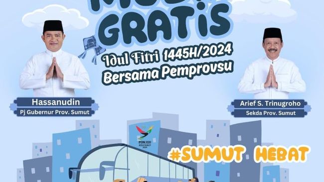 Pemprov Sumut kembali mengadakan mudik gratis tahun ini. Pendaftaran mudik gratis itu sudah dibuka mulai 14-31 Maret 2024.