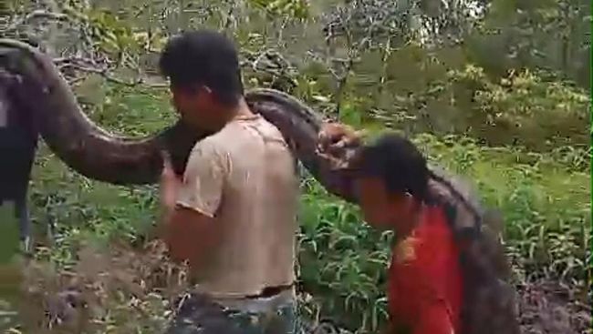 "Ini temanku dia panggil kita, katanya dia dapat ularnya di semak-semak. Kita langsung datang. Tapi pas itu babinya langsung terlepas dari lilitan ularnya," ujar Isbar.