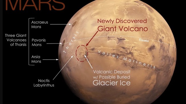 Para ilmuwan telah menemukan gunung berapi raksasa baru. Lokasinya berada Planet Mars.