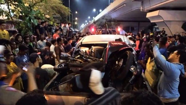 Andika menuturkan sewaktu tabrakan para pengendara motor ini kemungkinan sedang menunggu lampu merah. Lalu, tiba-tiba si pengendara mobil menabrak dari belakang.