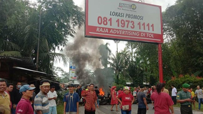 Dilihat detikSumut, Senin (25/3/2024), dalam video beberapa menit yang beredar, tampak sejumlah warga menutup jalan sembari membakar ban. Gumpalan asap membumbung tinggi ke udara.