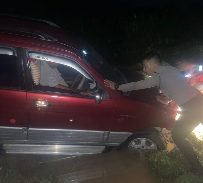 "Tim langsung melakukan pertolongan dan evakuasi menggunakan tali dibantu dengan menarik mobil menggunakan mobil Dinas Patroli Satsamapta," ujarnya.