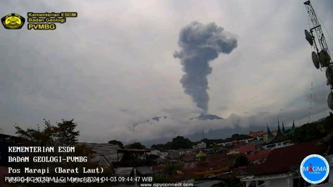 "Telah terjadi erupsi Gunung Marapi, Sumatera Barat pada tanggal 3 April 2024 pukul 09.30 WIB dengan tinggi kolom abu teramati 1.500 meter di atas puncak," kata Kepala PGA Gunung Marapi, Ahmad Rifandi dalam laporan resmi yang diterima detikSumut, Rabu (3/4/2024).