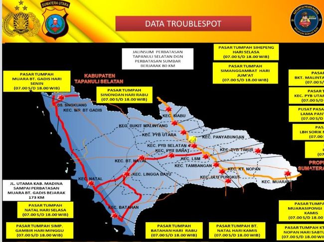 Berikut informasi terkait lokasi rawan macet dan jalan rusak di sepanjang ruas Jalinsum via Madina mudik lebaran 2024