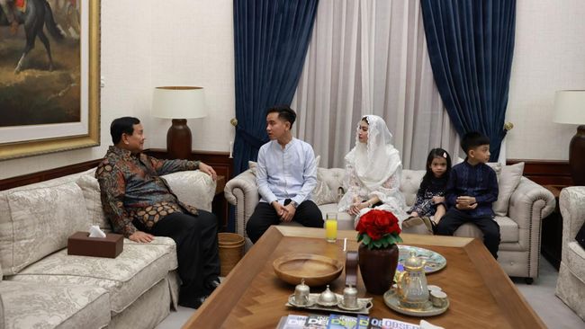 Menteri Pertahanan (Menhan) RI yang juga Presiden Indonesia terpilih, Prabowo Subianto menggelar open house di kediamannya, Jalan Kertanegara, Kebayoran, Jakarta Selatan pada hari pertama lebaran 1445 hijriah. Sejumlah tokoh tampak hadir.